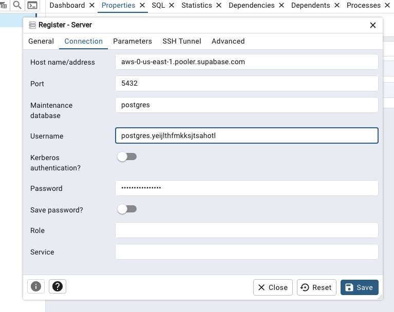 Connecting with pgAdmin