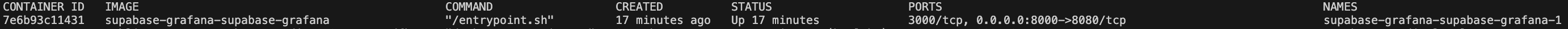 1docker ps -f name=supabase-grafanaThe output should look something like this: